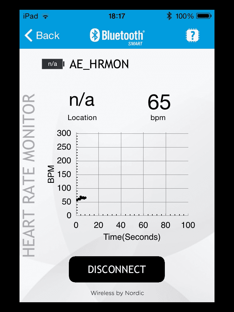 This tutorial demonstrates the Arduino 101's onboard Bluetooth® Low Energy capabilities. The sketch implements the standard Bluetooth® Low Energy "Heart Rate Monitor" service. The Heart Rate service takes values from a heart rate sensor (in this tutorial emulated by an analog sensor) and sends them over Bluetooth® Low Energy to your smartphone/device to create a graph of the data using the app nRF Toolbox for Bluetooth® Low Energy.